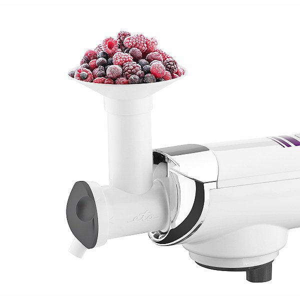 Το παγωτό θα έχει πολύ λεπτή υφή χάρη στα 36 μαχαίρια ανοξείδωτου χάλυβα που χειρίζονται πολύ προσεκτικά τα συστατικά. Το άνοιγμα πλήρωσης επιτρέπει την προσθήκη μεγαλύτερων κομματιών φρούτων. Με το Stamper μετακινείστε τις πρώτες ύλες προς την λεπίδα για να τις αλέσει. Αυτή τη νόστιμη λιχουδιά θα την ερωτευθείτε αμέσως!