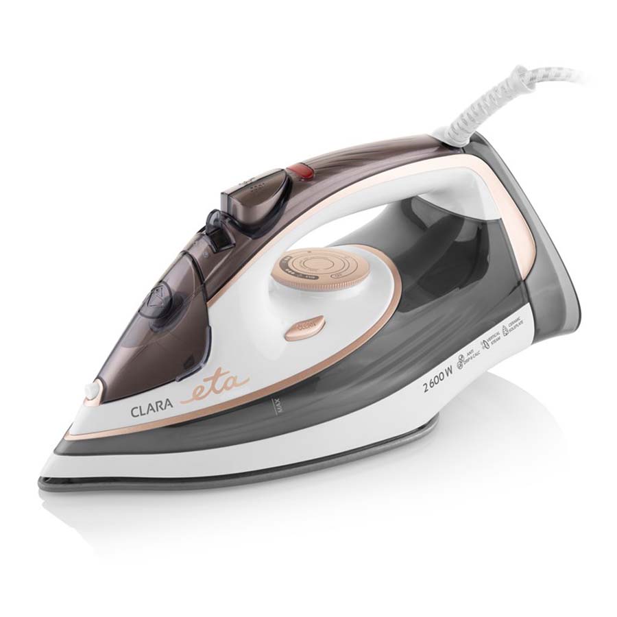 Το σίδερο ETA Clara σε μοντέρνο σχεδιασμό θα σας βοηθήσει να σιδερώσετε όλα τα είδη ρούχων και υφασμάτων. Με ισχύ 2600W, το σίδερο θερμαίνεται πολύ γρήγορα στη θερμοκρασία λειτουργίας του, ώστε να μπορείτε να ξεκινήσετε τη δουλειά αμέσως. Χάρη στην υψηλή ισχύ εισόδου, έχει πιο ισχυρή παραγωγή ατμού με ελάχιστες διακυμάνσεις στη θερμοκρασία λειτουργίας κατά το σιδέρωμα. Η φωτεινή σηματοδότηση σας ενημερώνει ότι έχει επιτευχθεί η καθορισμένη θερμοκρασία.