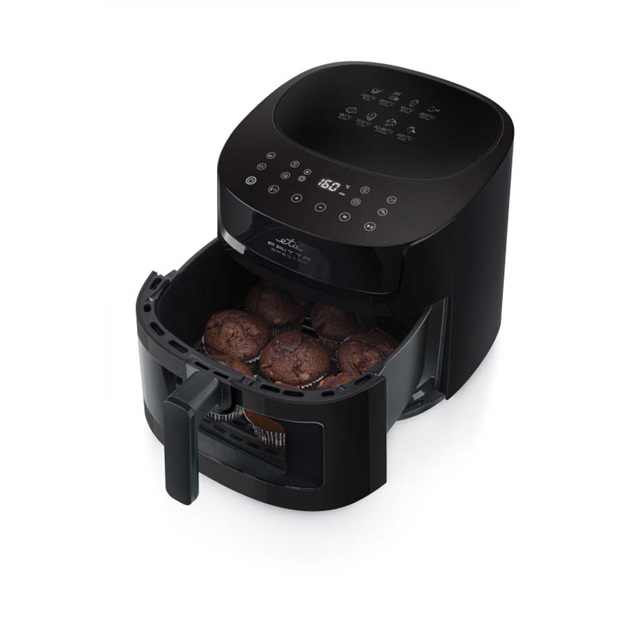 Ετοιμάστε τα αγαπημένα σας γεύματα με πιο υγιεινό τρόπο – ουσιαστικά χωρίς λάδι! Η φριτέζα θερμού αέρα ETA Fritta Spectra τηγανίζει, ψήνει και στεγνώνει χρησιμοποιώντας αέρα που κυκλοφορεί ομοιόμορφα γύρω από το φαγητό. Χάρη στο διαφανές παράθυρο και τον εσωτερικό φωτισμό, έχετε τέλεια εικόνα της διαδικασίας μαγειρέματος χωρίς να χρειάζεται να ανοίγετε τη φριτέζα άσκοπα.