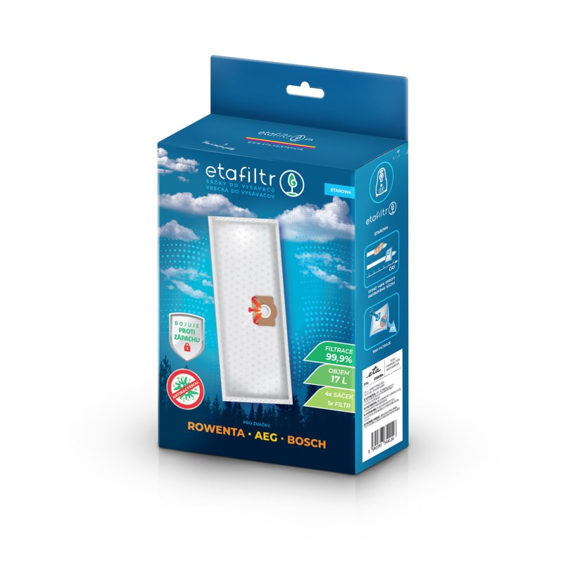 Η συσκευασία περιέχει 4 σακούλες ηλεκτρικής σκούπας και 1 φίλτρο. Με τις σακούλες etafiltration όχι μόνο θα έχετε πιο αποτελεσματικό και υγιεινό καθάρισμα , αλλά και ένα καθαρότερο και πιο υγιεινό σπίτι .