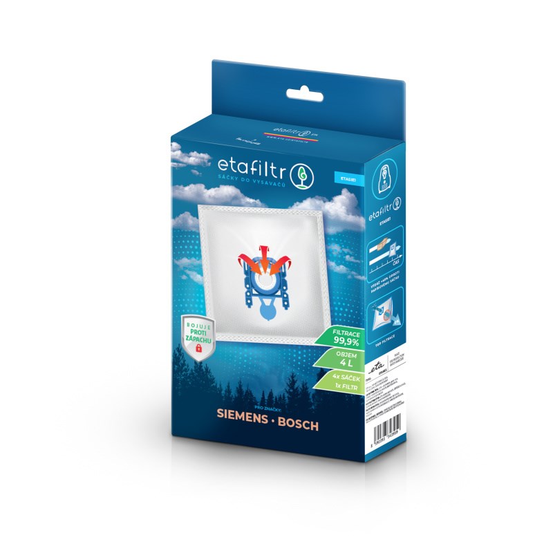 Η συσκευασία περιέχει 4 σακούλες ηλεκτρικής σκούπας και 1 φίλτρο. Με τις σακούλες etafiltration όχι μόνο θα έχετε πιο αποτελεσματικό και υγιεινό καθάρισμα , αλλά και ένα καθαρότερο και πιο υγιεινό σπίτι .