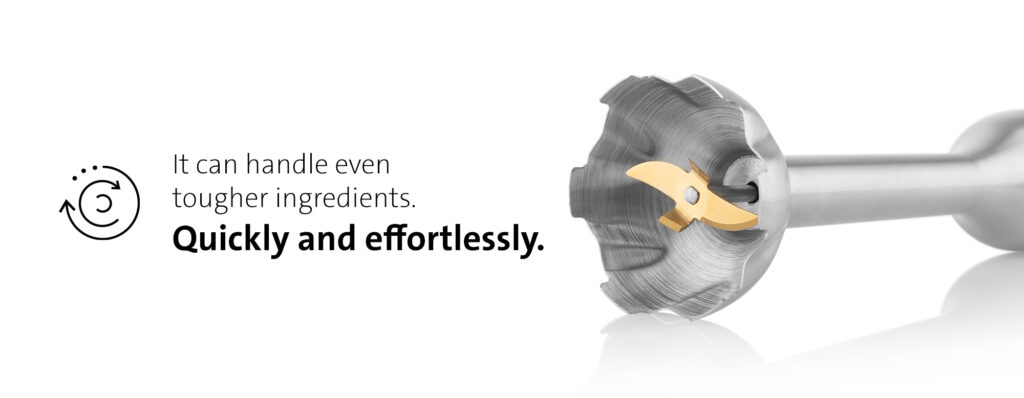 Η συσκευασία περιλαμβάνει έναν πρακτικό κόφτη με ένα μαχαίρι σε σχήμα δρεπανιού, που φροντίζει πιο σκληρά τρόφιμα όπως φρούτα, λαχανικά ή ξηρούς καρπούς. Είναι πολύ εύκολο να κόψετε κρεμμύδια και μυρωδικά, ενώ μπορείτε επίσης να το χρησιμοποιήσετε για να φτιάξετε σπιτικό πέστο για ζυμαρικά.