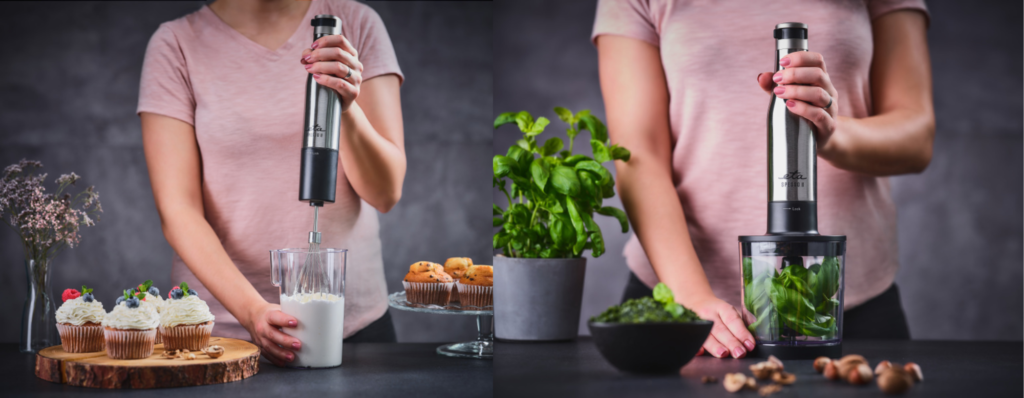 Το πολυλειτουργικό ραβδομπλέντερ ETA Spesso II δεν πρέπει να λείπει σε καμία σύγχρονη κουζίνα. Δεν υπερέχει μόνο στο ανακάτεμα, αλλά παρασκευάζει κρεμώδεις σάλτσες, σούπες, smoothies και χειρίζεται εύκολα το χτύπημα της μαρέγκας.