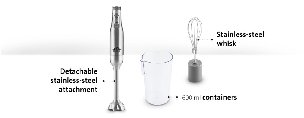 Το πολυλειτουργικό μπλέντερ ETA Spesso II μπορεί να χειριστεί πολλά περισσότερα από ένα πρωινό smoothie. Το αφαιρούμενο εξάρτημα από ανοξείδωτο ατσάλι είναι ιδανικό για την ανάμειξη και το ανακάτεμα μιλκσέικ, σάλτσες, σούπες, κουάκερ για μωρά και μπορείτε επίσης να το χρησιμοποιήσετε για να φτιάξετε σπιτική μαγιονέζα.